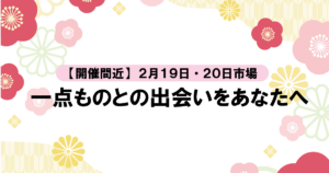 皆様、こんにちは。にしかわ真田会です。いよいよ今週、2月19日(木)は「反物・中華会」、20日(金)は「にこにこ真田会」が開催されます!実は、市場を運営している私たちも、当日荷物が届いて蓋を開けてみるまで「今回どんなお宝 […]