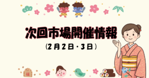 いつもご利用いただきありがとうございます。次回の市場開催のお知らせです。